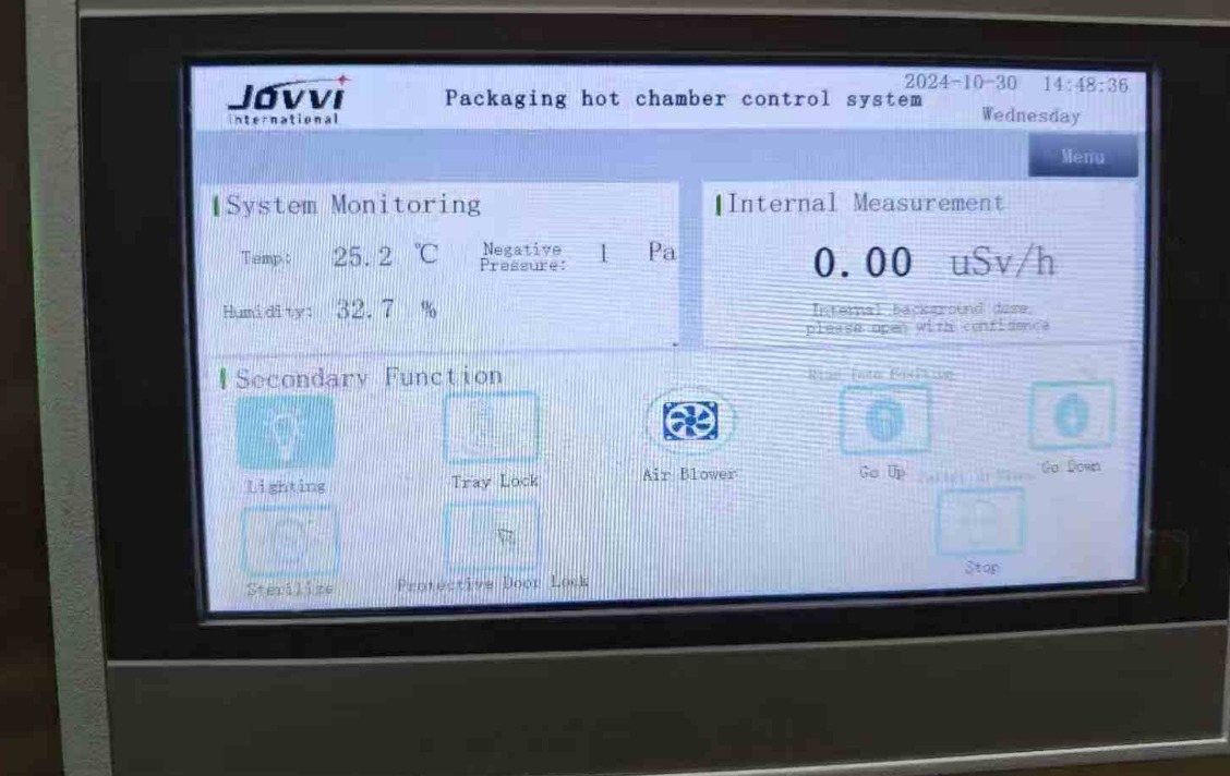 1"Αποκαλύπτουν τη λειτουργία της συσκευής διανομής πυρηνικών φαρμάκων I131 και άλλων εργασιών, η περιοχή εργασίας πληροί το επίπεδο καθαρισμού κλάσης Α (ISO 100).